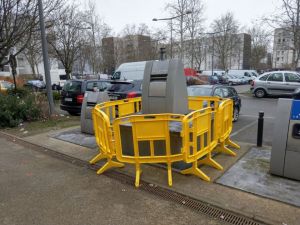 La poubelle dangereuse, rue Edgar Degas à Aunay- Sécurisée et réparée ce lundi 2 mars 2020
