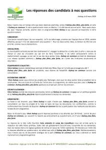 La réponse de la liste Lutte Ouvrière Faire entendre le camp des travailleurs nous est arrivée après la rédaction de cette brève synthèse. Cette liste est globalement d’accord avec l’ensemble de nos demandes, mais les replace dans une logique globale de remise en cause de l’ordre capitaliste. On trouvera sur notre site la réponse détaillée au questionnaire, de même que celle d’Aulnay plus fière, plus forte. Malheureusement, nous n’avons pas eu de document analogue de la part d’Aulnay en commun, qui nous a adressé un texte reprenant son programme général.