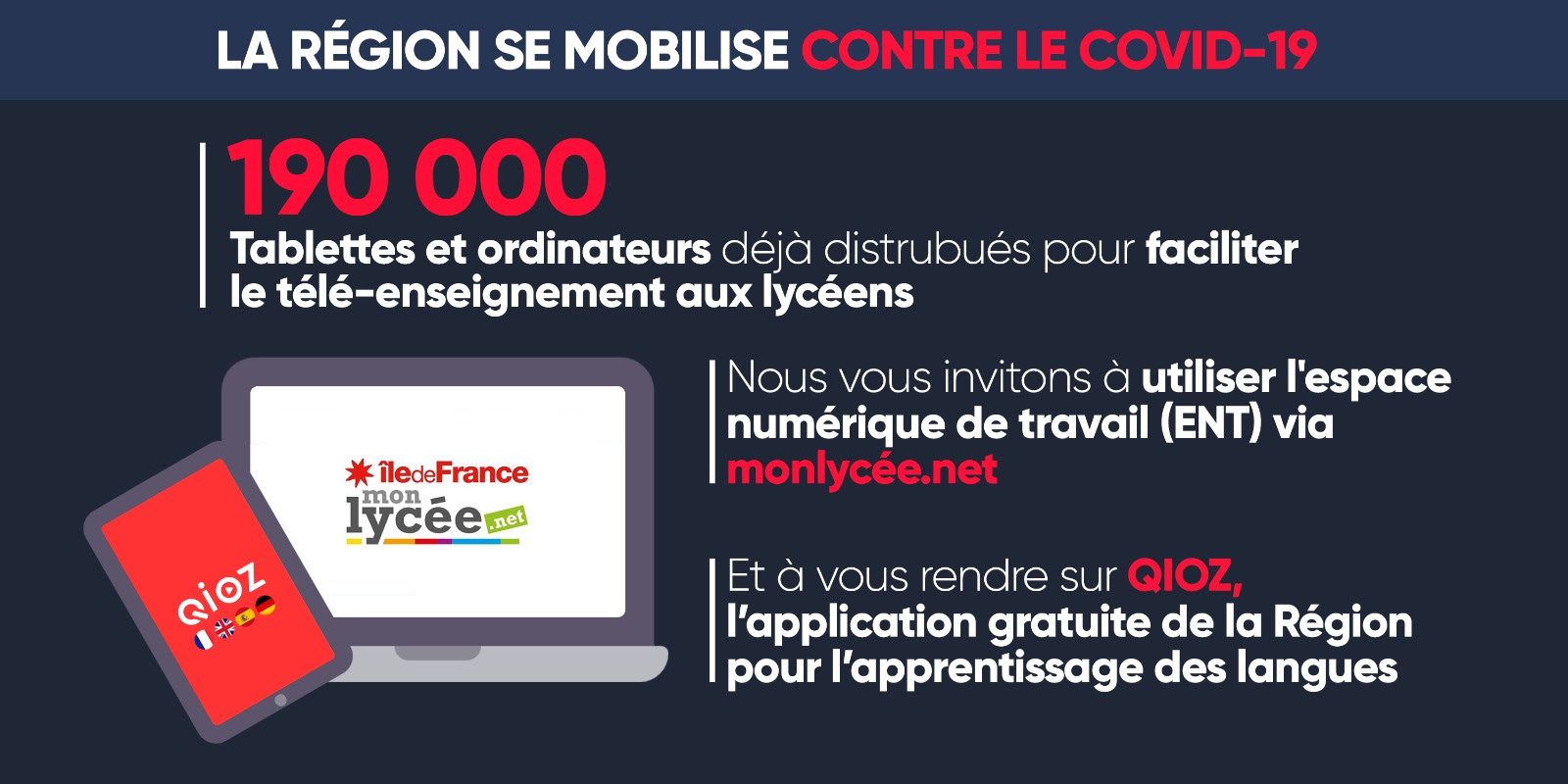 Les événements de ces dernières semaines appellent à notre mobilisation collective. Chacun, à son niveau, peut lutter contre la propagation du Covid-19 en limitant au maximum ses déplacements et ses interactions sociales. Rester chez soi, c’est sauver des vies. C’est pourquoi, la Région île-de-France a demandé à l’ensemble de ses agents dans les lycées de rester à leur domicile et a placé 98% de ses agents du siège en télétravail.
