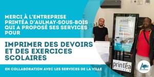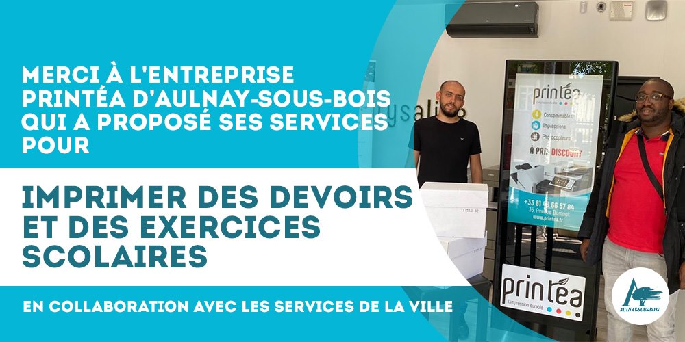 La Ville d’Aulnay-sous-Bois remercie l’entreprise aulnaysienne Printéa – impression durable – qui réalise, en lien avec la Direction de l’Education et les écoles, des impressions de devoirs et exercices scolaires.