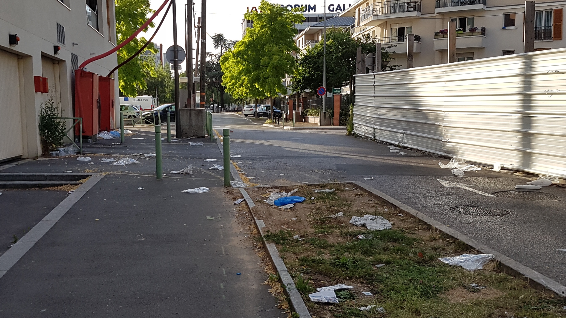 La rue Alfred Sisley à Aulnay-sous-Bois encore couverte de détritus
