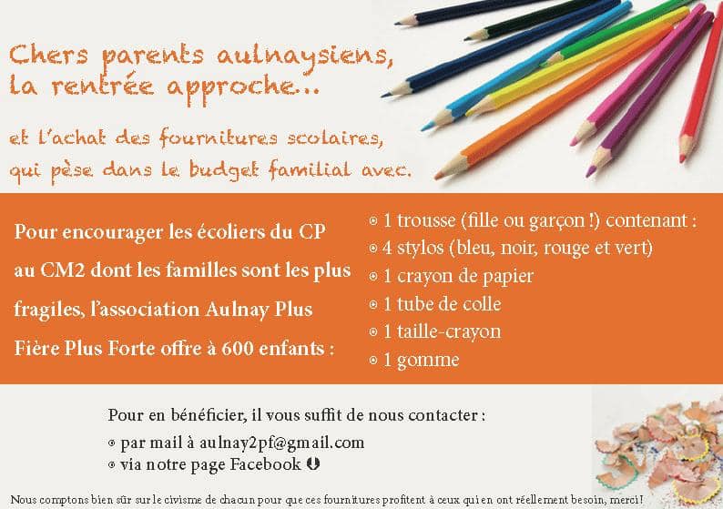 La crise sanitaire a particulièrement impacté les plus fragiles. Afin d’apporter une aide à ces familles, l’association Aulnay plus fière plus forte offre à 600 enfants une trousse complète !