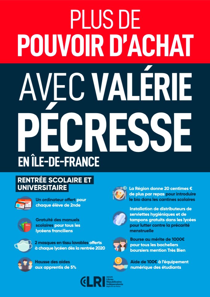 Selon le tract ci-contre, Valérie Pécresse aurait donné plus de pouvoir d’achat aux Franciliens. Quelques actions, comme le gel du tarif du passe Navigo ou la distribution d’ordinateurs aux Lycées de la région permettraient de confirmer cette hausse du pouvoir d’achat.