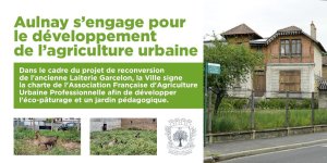 Dans le cadre du projet de reconversion de l’ancienne Laiterie Garcelon, Aulnay-sous-Bois signe la charte de l’Association Française d’Agriculture Urbaine Professionnelle afin de développer notamment l’éco-pâturage et un jardin pédagogique.