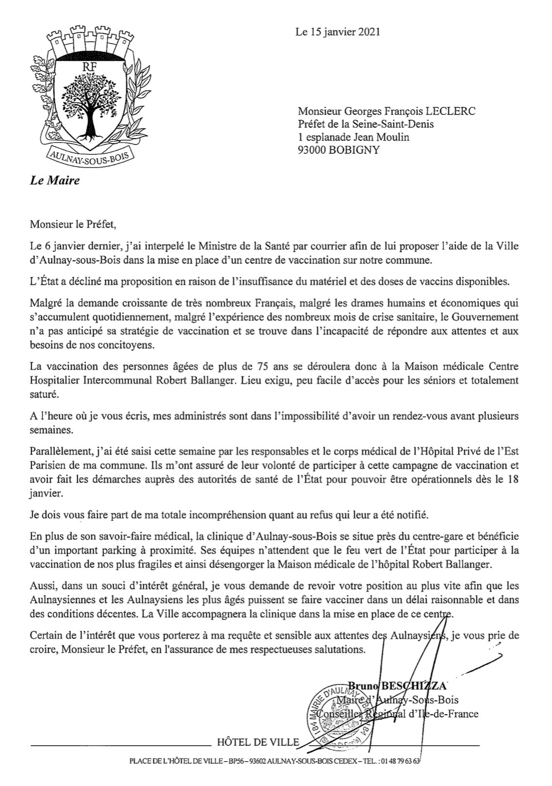Publié le 17 janvier 2021, dans Actualité, Politique, Santé, et tagué Aulnay, Aulnay-sous-Bois, Bruno Beschizza, Coronavirus, COVID-19, Vaccin. Bookmarquez ce permalien. Poster un commentaire.