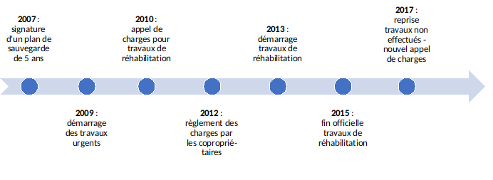 Frise chronologique du plan de sauvegarde pour des travaux urgents et de réhabilitation