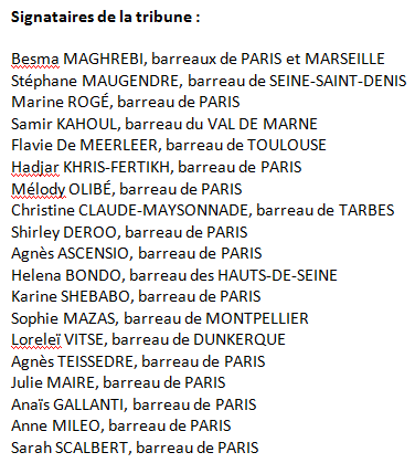 Les autres avocats qui souhaiteraient rejoindre le collectif sont invités à faire figurer leur nom sous ce manifeste car cette tribune est ouverte à la signature de ceux de nos confrères qui souhaitent nous rejoindre. Adressez vos souhaits de signature en commentaire ou à l’adresse :