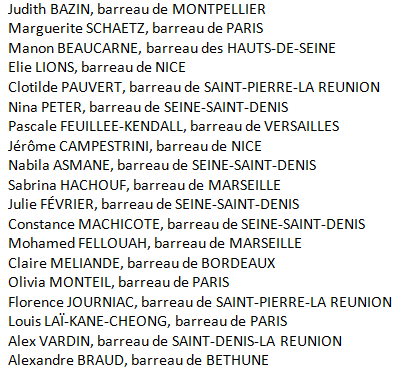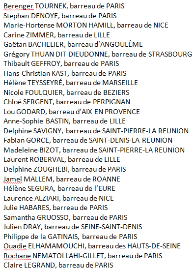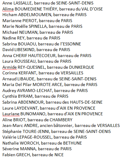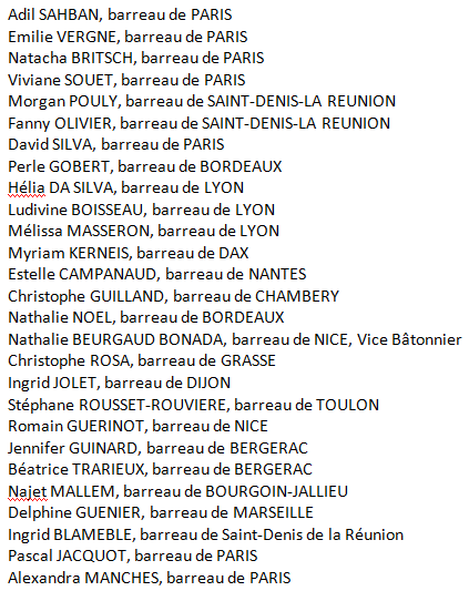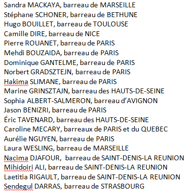 Avocats premiers signataires de la tribune mentionnée dans l’article précédent intitulé : « la résistance aux lois liberticides et scélérates de Macron s’organise chez les Avocats »