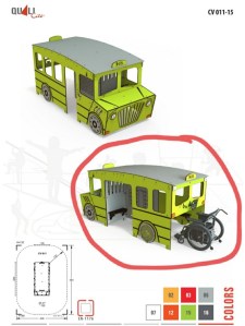 L’aire de jeu de l’espace Jules Verne n’a d’inclusif que l’adjectif comme l’attestent les images ci-contre et les liens ci-dessous. C’est un jeu avec un accès PMR à l’arrière à un simple volant. Mais un fauteuil ne rentre pas. Il n’y a rien pour les déficients visuels. Ce n’est pas un jeu inclusif. Impliquer les parties prenantes aurait permis d’éviter le mécontentement qui gronde, d’autant plus que l’association Cap handi’Kids avait fait des propositions qui n’ont pas été prises en compte.