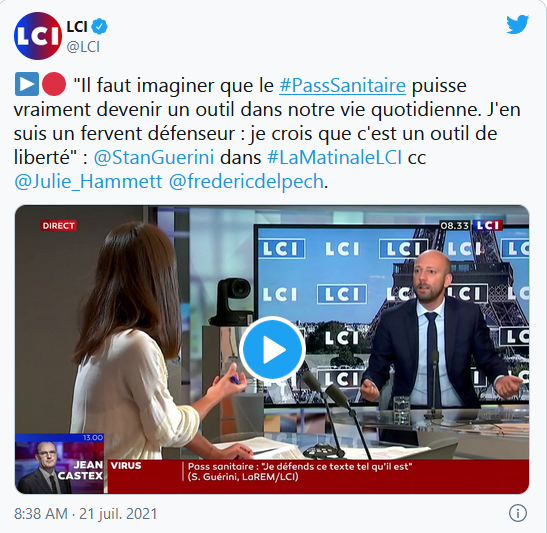 Ce pass sanitaire n’a pas d’autre fonction que d’imposer avec une grande violence et aussi une grande illégitimité, la vaccination à des bien portants, à soumettre et à asservir « quelqu’en soit le prix » les français qui utilisent leur cerveau pour discerner, évaluer, réfléchir et au final prendre leur responsabilités au sein de toute cette propagande continuellement alarmiste depuis des mois !