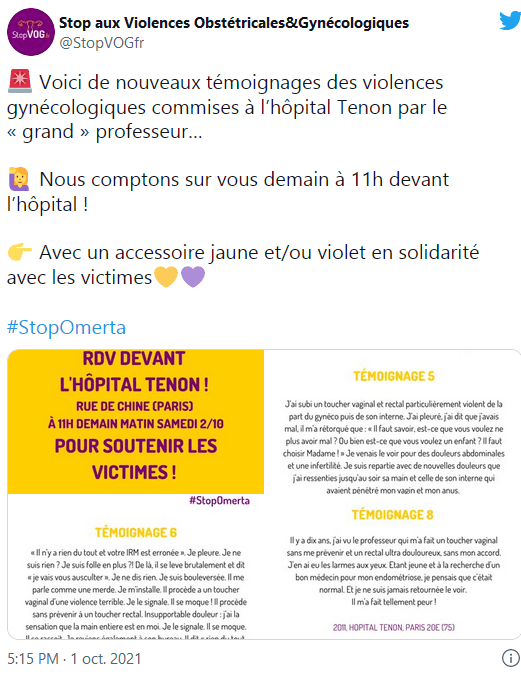 Depuis une dizaines de plaintes seraient en préparation et Sonia Bisch, porte-parole de Stop aux violences obstétricales et gynécologiques, a organisé un rassemblement devant l’hôpital Tenon ce samedi 1er octobre au matin afin de soutenir les victimes.