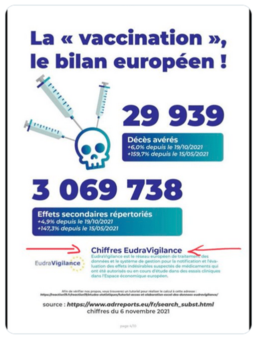 29 939  Décès avérés post-vaccination en Europe au 6 novembre 2021 et 3 069 738 effets secondaires répertoriés sur Eudravigilance….
