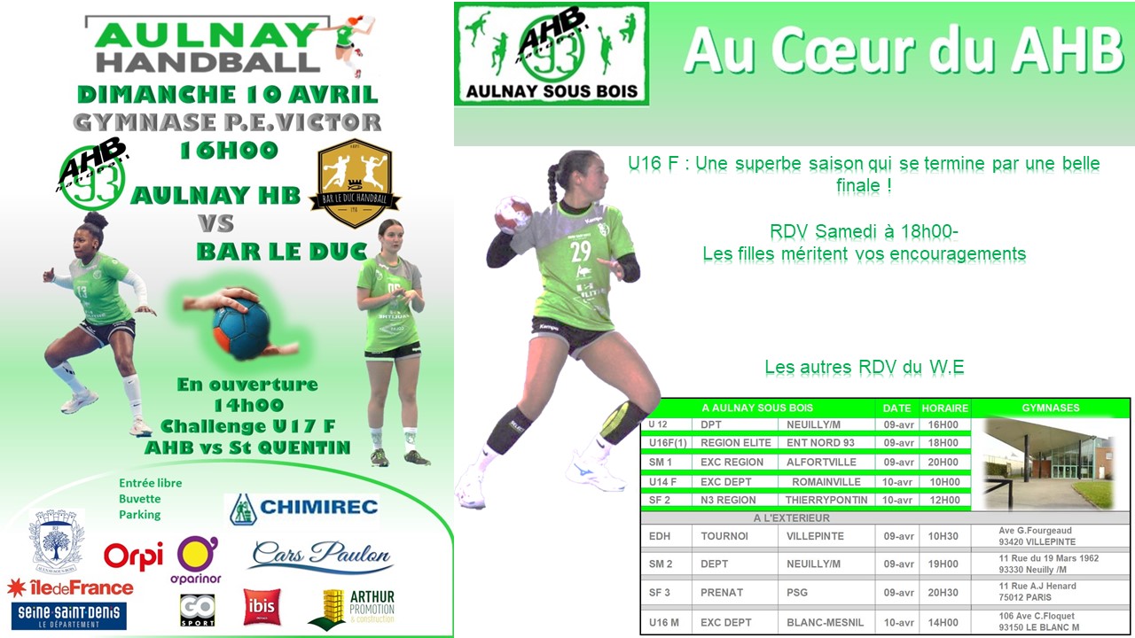 Puis Dimanche, le Aulnay Handball vous propose deux rencontres de niveau national.