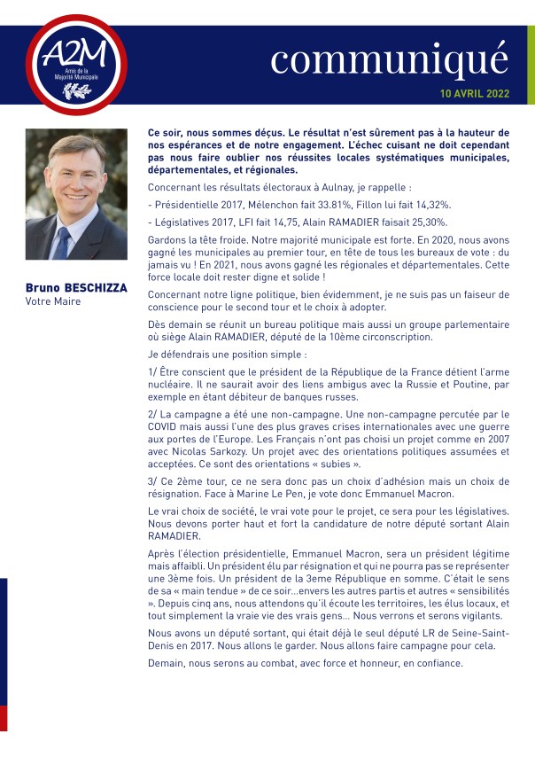 Publié le 11 avril 2022, dans Politique, et tagué Aulnay-sous-Bois, Bruno Beschizza pour Emmanuel Macron. Bookmarquez ce permalien. 1 Commentaire.
