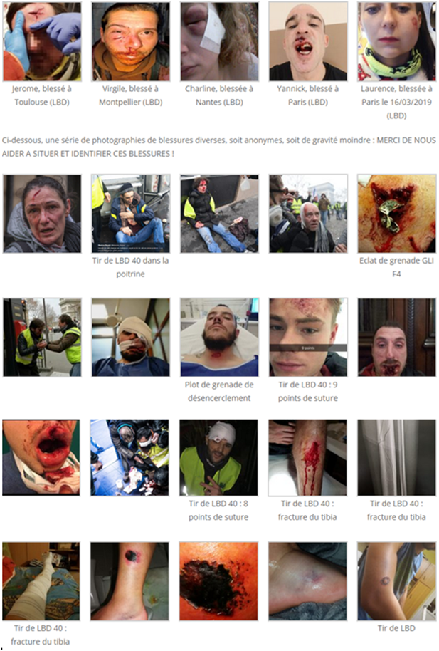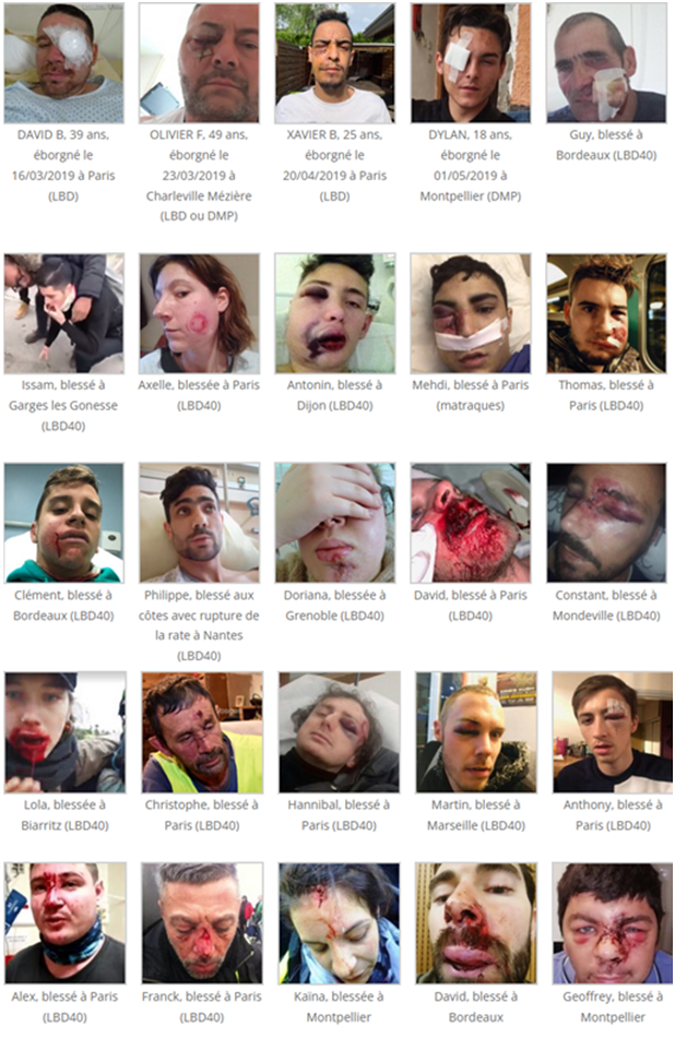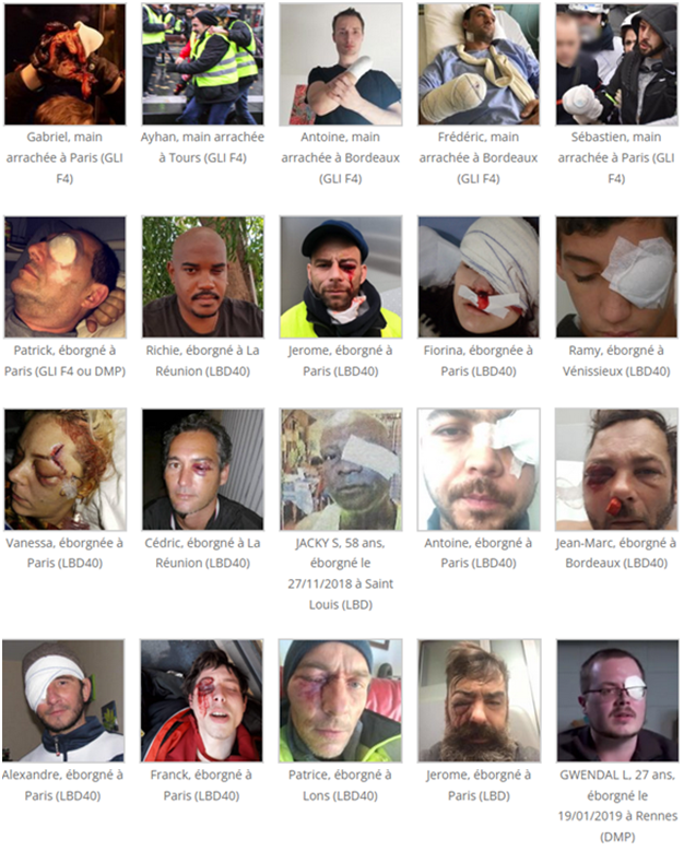 Voici en images les dégâts de la folie d’un président qui fait peu cas du caractère sacré de la vie et qui n’a aucun scrupules à mutiler des gens  avec la complicité coupable  de son ministre  Castaner, tous deux des sanguinaires qui font fi  de l’intégrité physique et des droits de l’homme ! Face à cette boucherie qu’on ne peut oublier, Impossible de lui donner nos voix !
