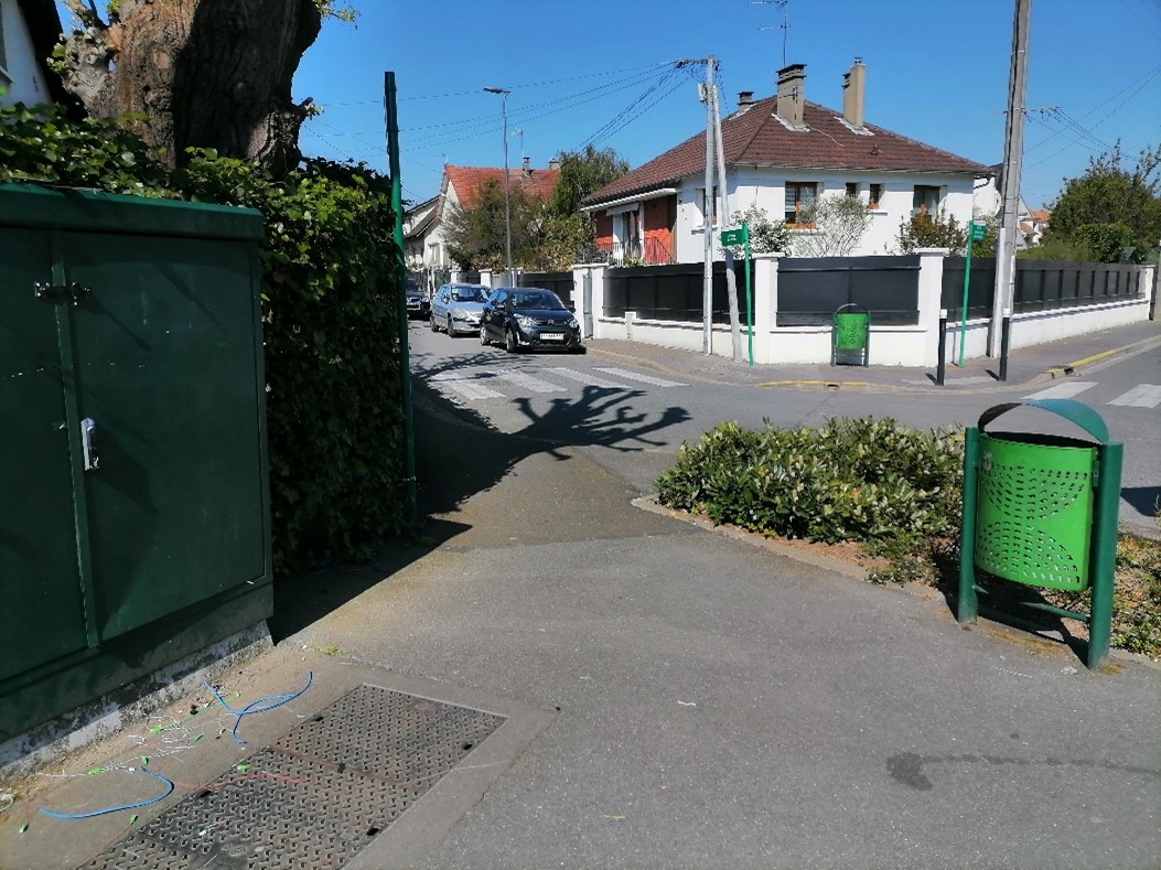 Des techniciens salissent le trottoir après une intervention dans une armoire quartier Mairie d’Aulnay-sous-Bois