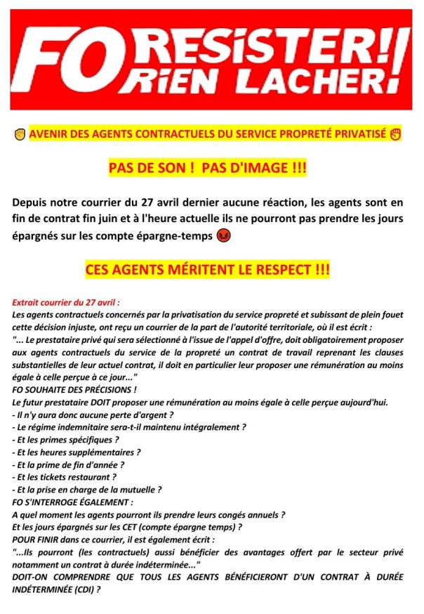 Force Ouvrière communaux d’Aulnay-sous-Bois alerte sur la privatisation du service propreté