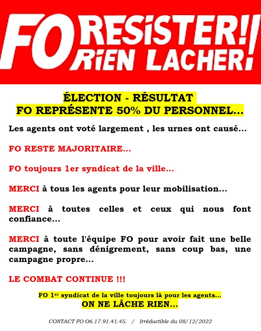 Publié le 9 décembre 2022, dans Syndicats, et tagué Aulnay-sous-Bois, Elections professionnelles, Force Ouvrière. Bookmarquez ce permalien. Poster un commentaire.