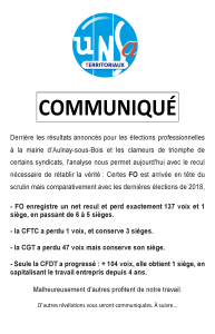 - FO enregistre un net recul et perd exactement 137 voix et 1 siège, en passant de 6 à 5 sièges.