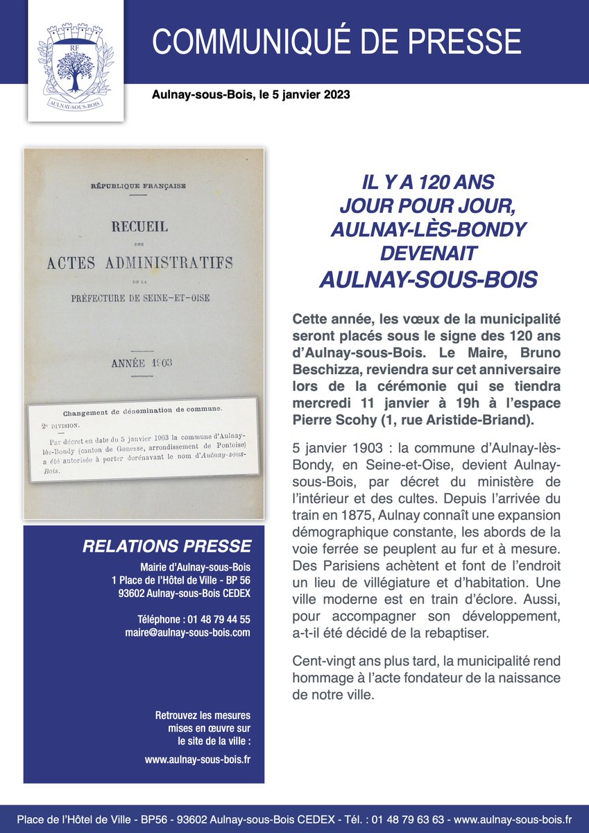 Publié le 6 janvier 2023, dans Actualité, et tagué Aulnay-sous-Bois. Bookmarquez ce permalien. Poster un commentaire.