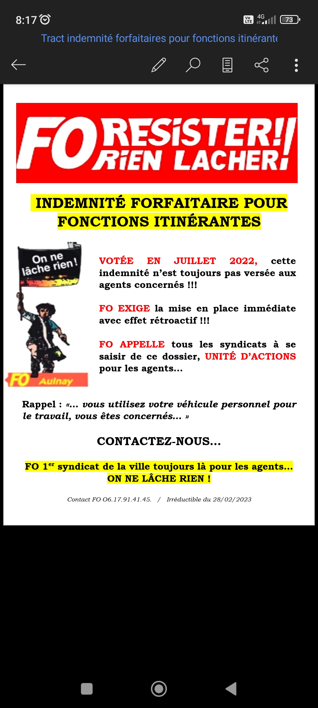 Publié le 28 février 2023, dans Syndicats, et tagué Aulnay-sous-Bois, Force Ouvrière, Indemnités. Bookmarquez ce permalien. Poster un commentaire.
