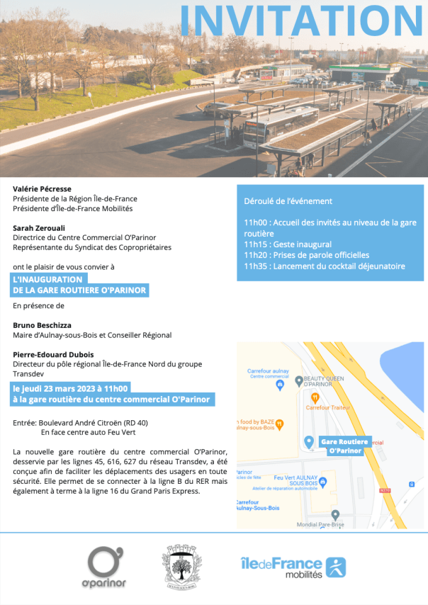Publié le 8 mars 2023, dans Actualité, et tagué Aulnay-sous-Bois, O'Parinor, Transports. Bookmarquez ce permalien. Poster un commentaire.