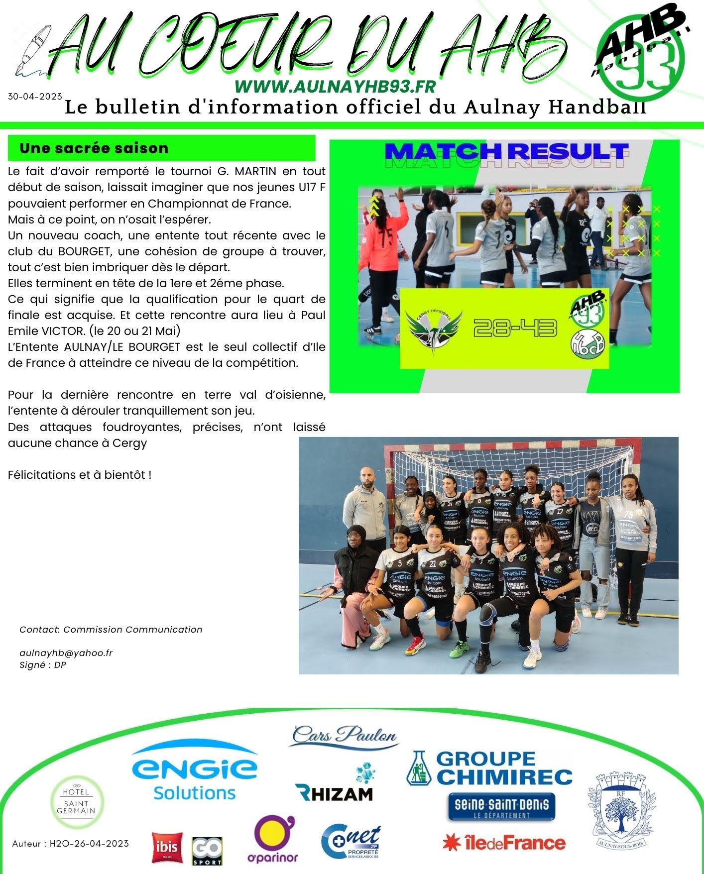 Publié le 30 avril 2023, dans Sport, et tagué Aulnay-sous-Bois, Handball. Bookmarquez ce permalien. Poster un commentaire.