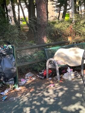 Publié à 280 × 373 dans L’aire de jeux du Gros Saule à Aulnay-sous-Bois squattée, des détritus partout et la végétation non taillée