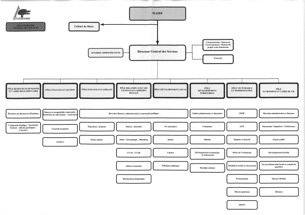 Le 24 juillet dernier, nous avons demandé au Maire de nous transmettre l’organigramme de la ville comprenant la Direction Générale, les Directeurs, Chefs de Service et Chargés de Mission.