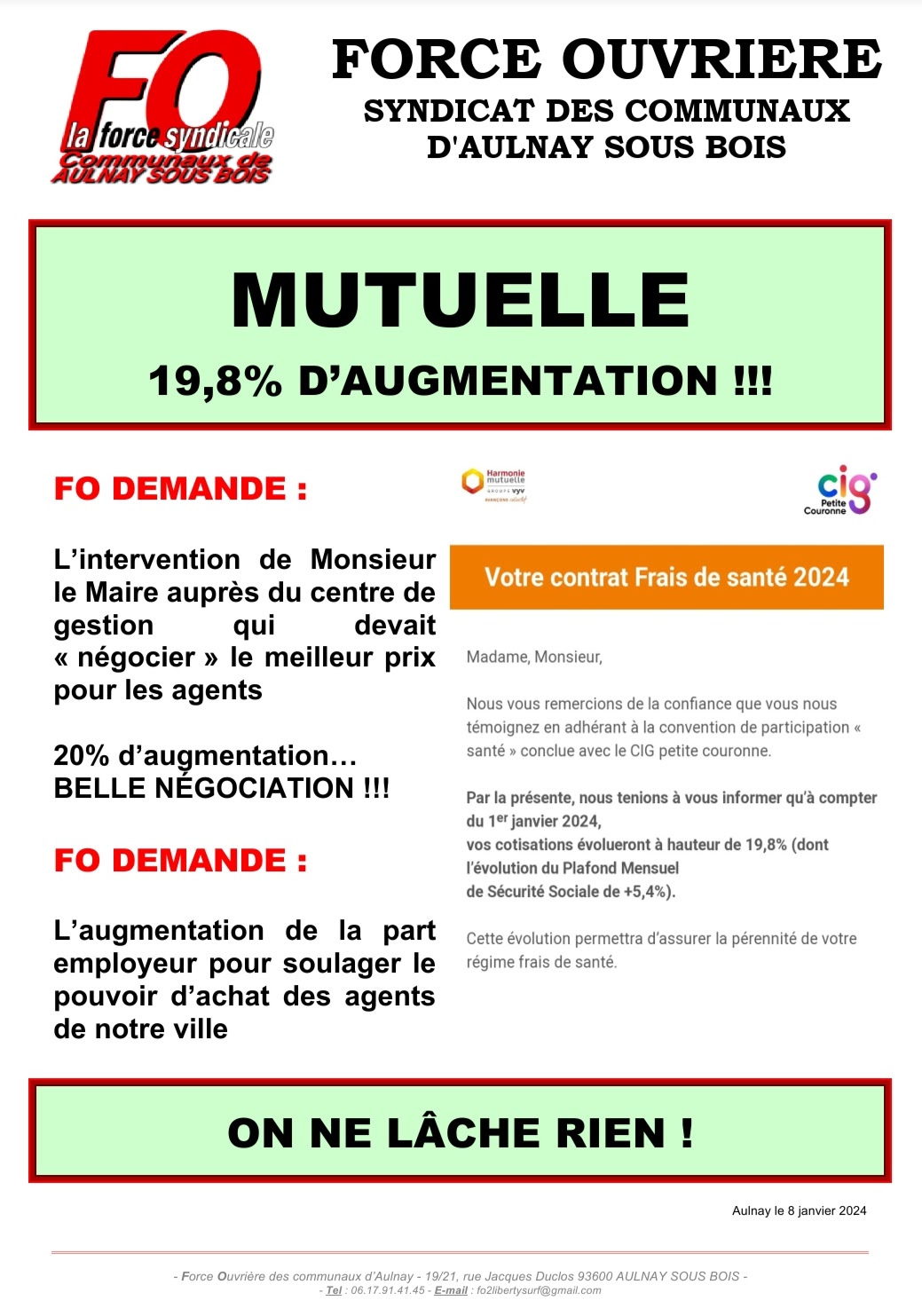 20% d’augmentation pour la mutuelle des agents de la ville d’Aulnay-sous-Bois