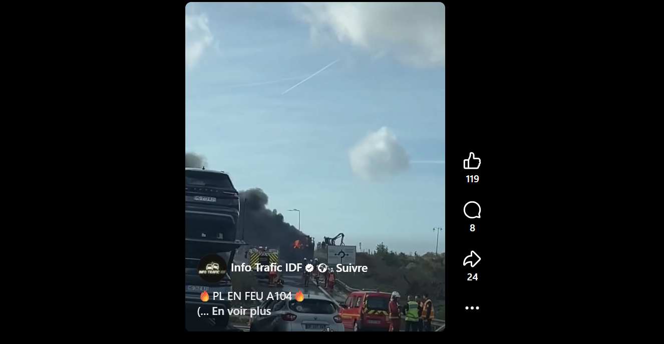 Un camion en feu sur l’autoroute A104 sortie Villepinte