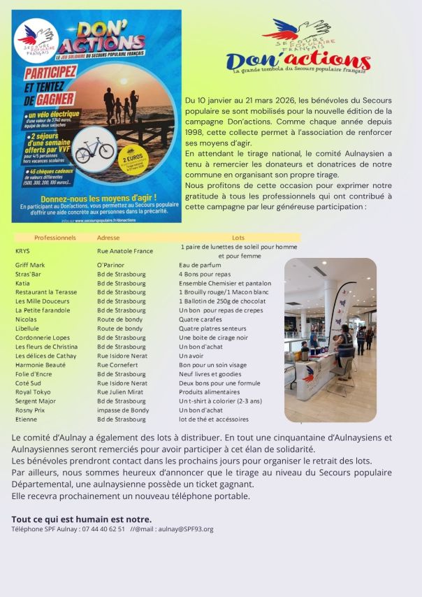 Tombola solidaire à Aulnay-sous-Bois par le Secours Populaire