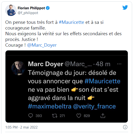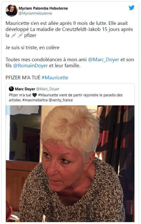 Témoignage vidéo d’une minute et 20 secondes de Annie chapelier sur ce lien télégram :