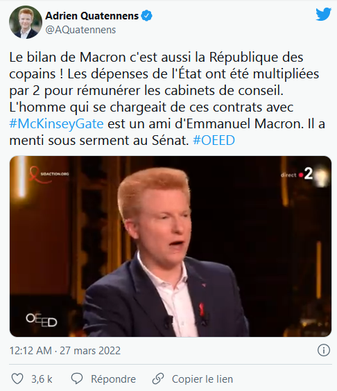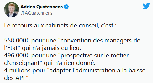 Adrien Quatennens de la France insoumise fait le procès des cabinets de conseils de la Macronie