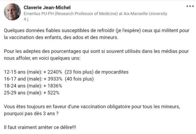 Professeur Jean-Michel Claverie : Vacciner les enfants et les adolescents est du délire et va engendrer un massacre ( 3 ) !