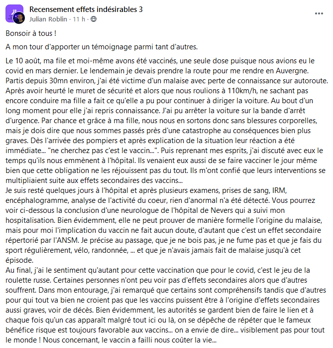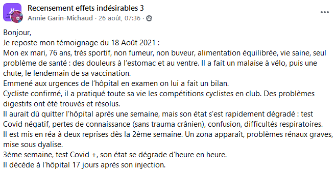 Personnellement je ne doute absolument pas de l’authenticité ni de la sincérité de ces retours d’expérience déposés sur un groupe Facebook qui a déjà été censuré plusieurs fois ! D’après vous, pourquoi ?
