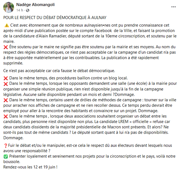 Nadège Abomangoli, candidate NUPES aux législatives , aborde pour Aulnaycap les sujets cruciaux