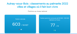 Selon un classement sur le thème du « bien vivre sa ville », Aulnay-sous-Bois se classe en 603e position (seules les villes de plus de 2000 habitants sont comptabilisées). C’est loin derrière de nombreuses ville de France y compris Grigny dans l’Essonne, qui se classe 233e.
