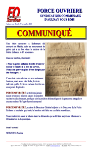 FORCE OUVRIÈRE, soutien le Directeur Général adjoint et le Directeur de la Petite Enfance et souhaite que toute la lumière soit faite sur ces faits scandaleux.