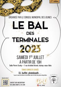 Un bal des terminales est organisé le samedi 1er juillet à partir de 19h00 au gymnase Pierre Scohy ! Au programme : DJ, buffet, photobooth, espace extérieur… Pour y participer, inscriptions ouverte jusqu’au 25 juin.