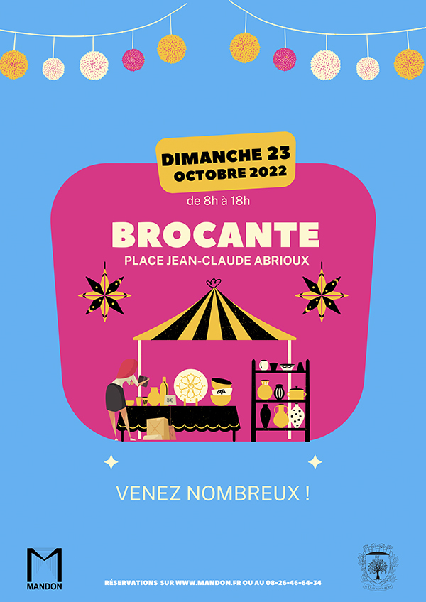 Venez exposer, flâner ou faire de bonnes affaires à la brocante qui se tiendra dimanche 23 octobre de 8h à 18h sur la Place Jean-Claude Abrioux.