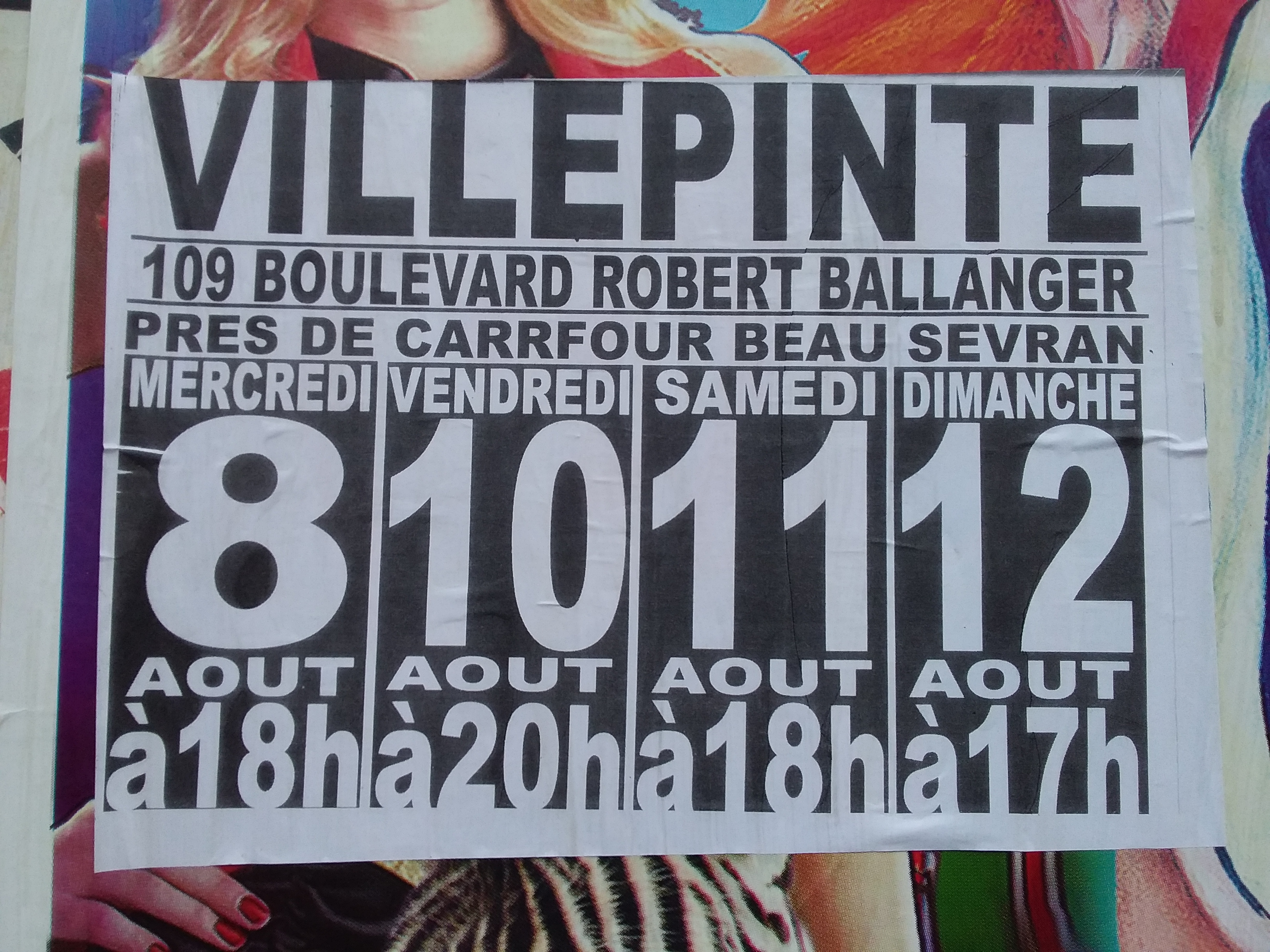 Dates et horaires sur cette affiche, photographiée en plein coeur du quartier Mitry à Aulnay.