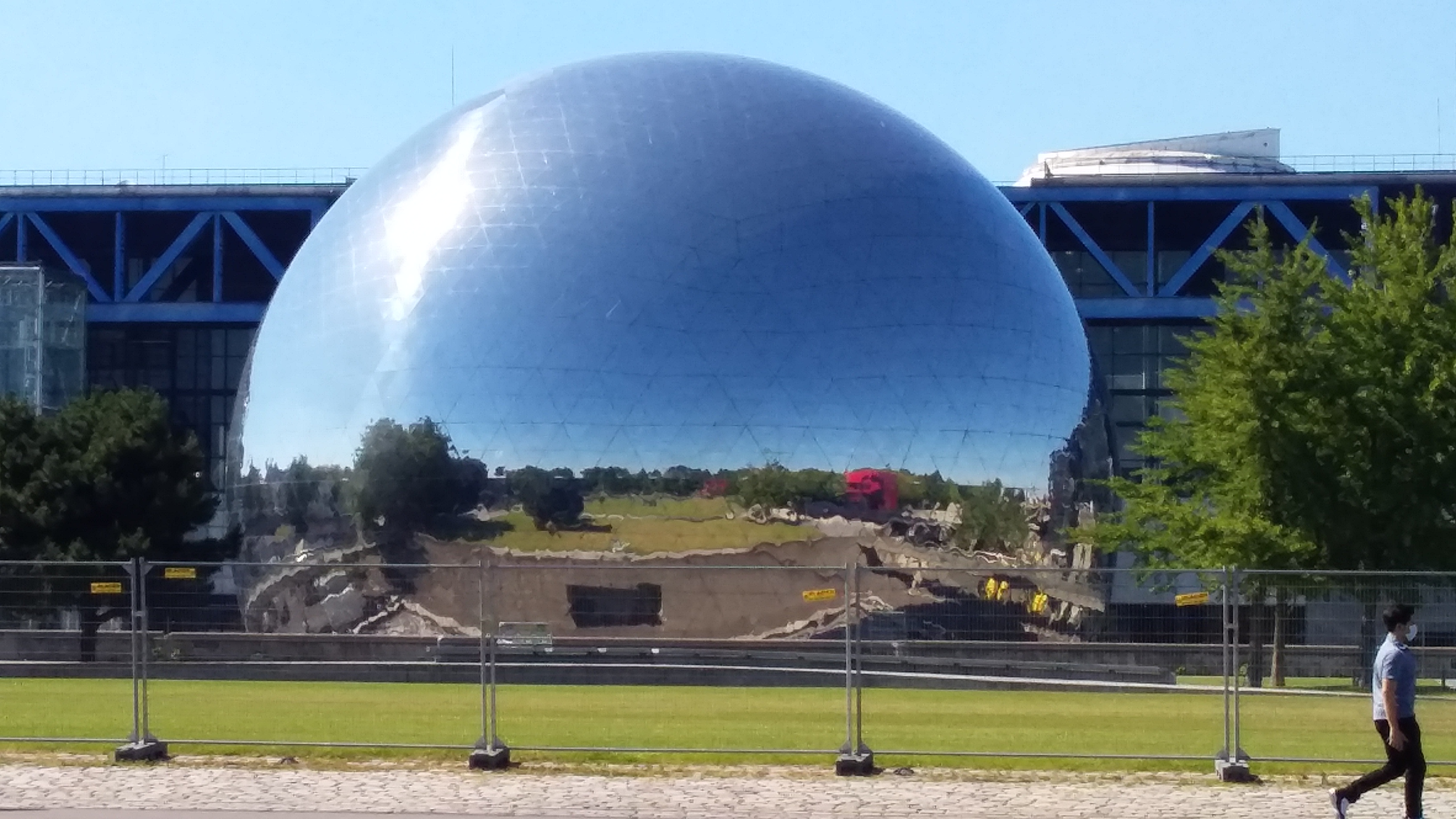 - Photo: Cette photo à été prise par mes soins hier après midi, elle vise à vous montrer cette jolie boule mythique qu’es la Géode, ce qu’on y voit sur sa surface, est ce un reflet? ou, est ce fait exprès? Je ne sais pas.