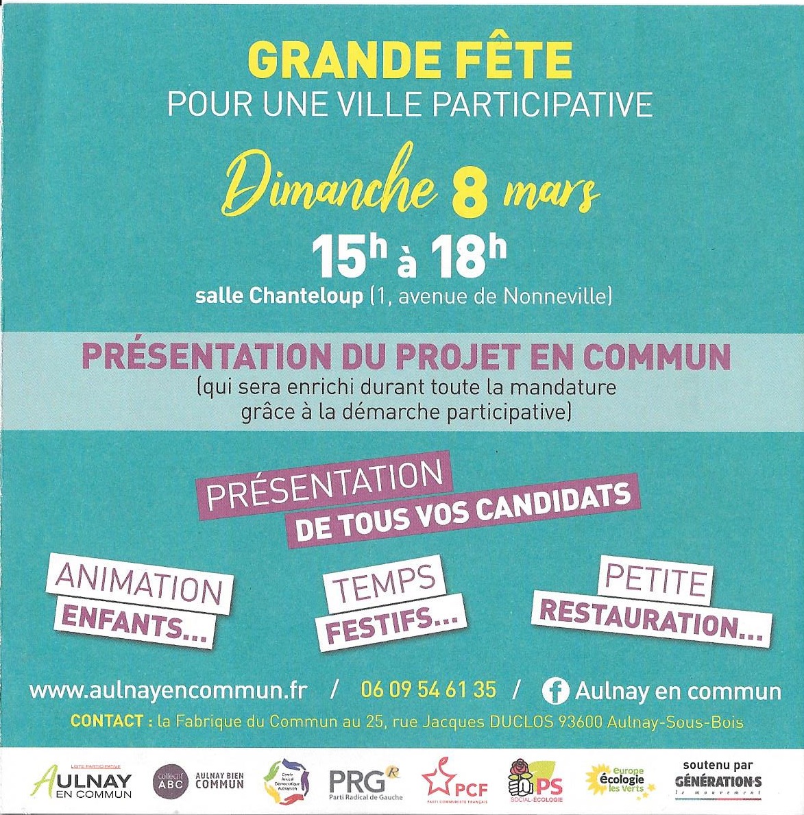 « Aulnay en commun » , organise une grande fête, qui se déroulera