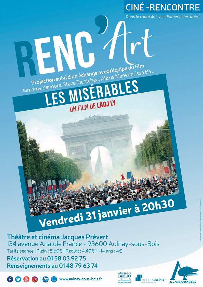 [RENC’ART] Le Cinéma- Théâtre- Espace Jacques Prévert d’Aulnay-Sous-Bois, accueille une ciné-rencontre avec l’équipe du film de Ladj Ly « Les Misérables », vendredi 31 janvier à 20h30.