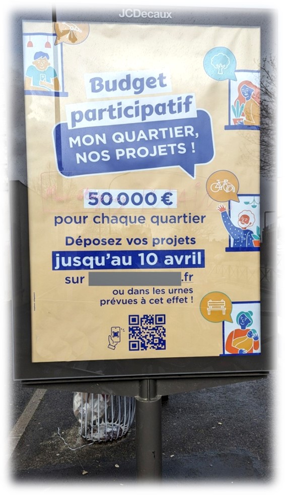 « …Pour améliorer votre cadre de vie seront réalisés ensemble sous formes d’ateliers, de réunions coins de rue ou bien d’enquêtes. »