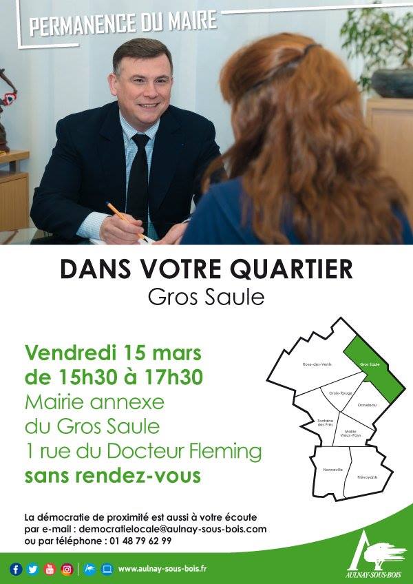 Venez le rencontrer sans rendez-vous à la Mairie annexe 👉 https://www.aulnay-sous-bois.fr/actualites/permanence-du-maire-dans-votre-quartier-gros-saule/
