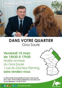 Demain, de 15h30 à 17h30, permanence du Maire dans le quartier Gros Saule.