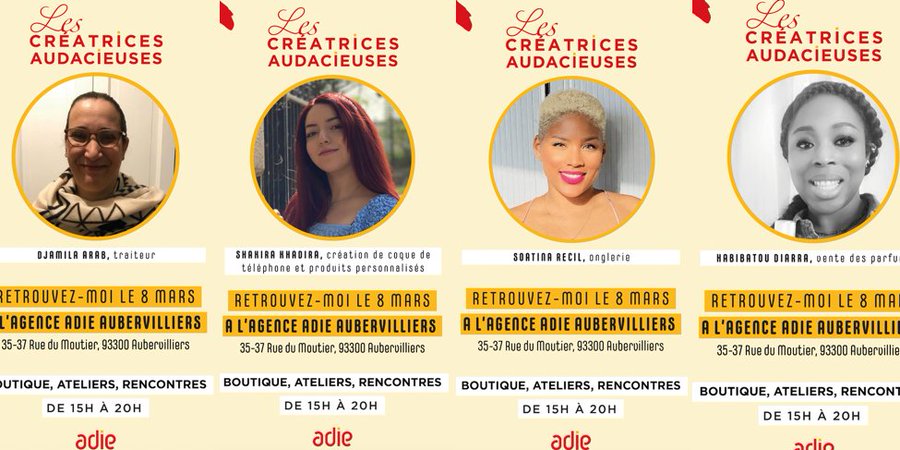7 créatrices audacieuses seront mises à l’honneur aujourd’hui de 15h à 20h à l’agence Adie Aubervilliers (35-37 Rue du Moutier).