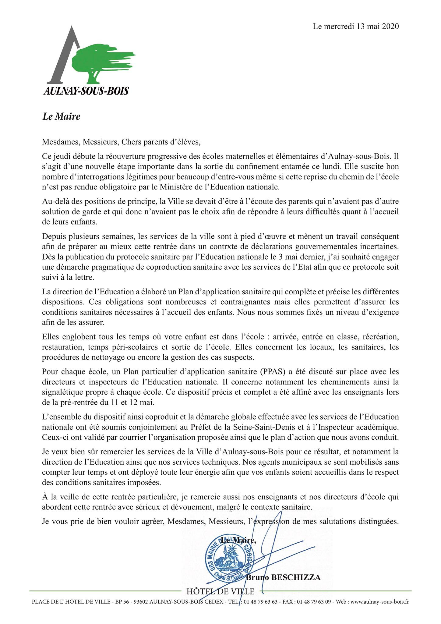 Le Maire Bruno Beschizza interpelle l’Inspection Académique de Créteil concernant le refus des équipes éducatives d’accueillir les enfants dans plusieurs groupes scolaires de la Ville d’Aulnay-sous-Bois.
